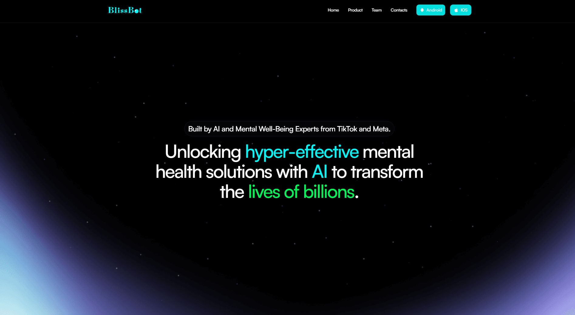 To design and develop a sleek, futuristic, and emotionally resonant website that showcases BlissBot’s AI-powered mental wellness solutions, builds trust with users, and reflects the credibility of its world-class team and mission.