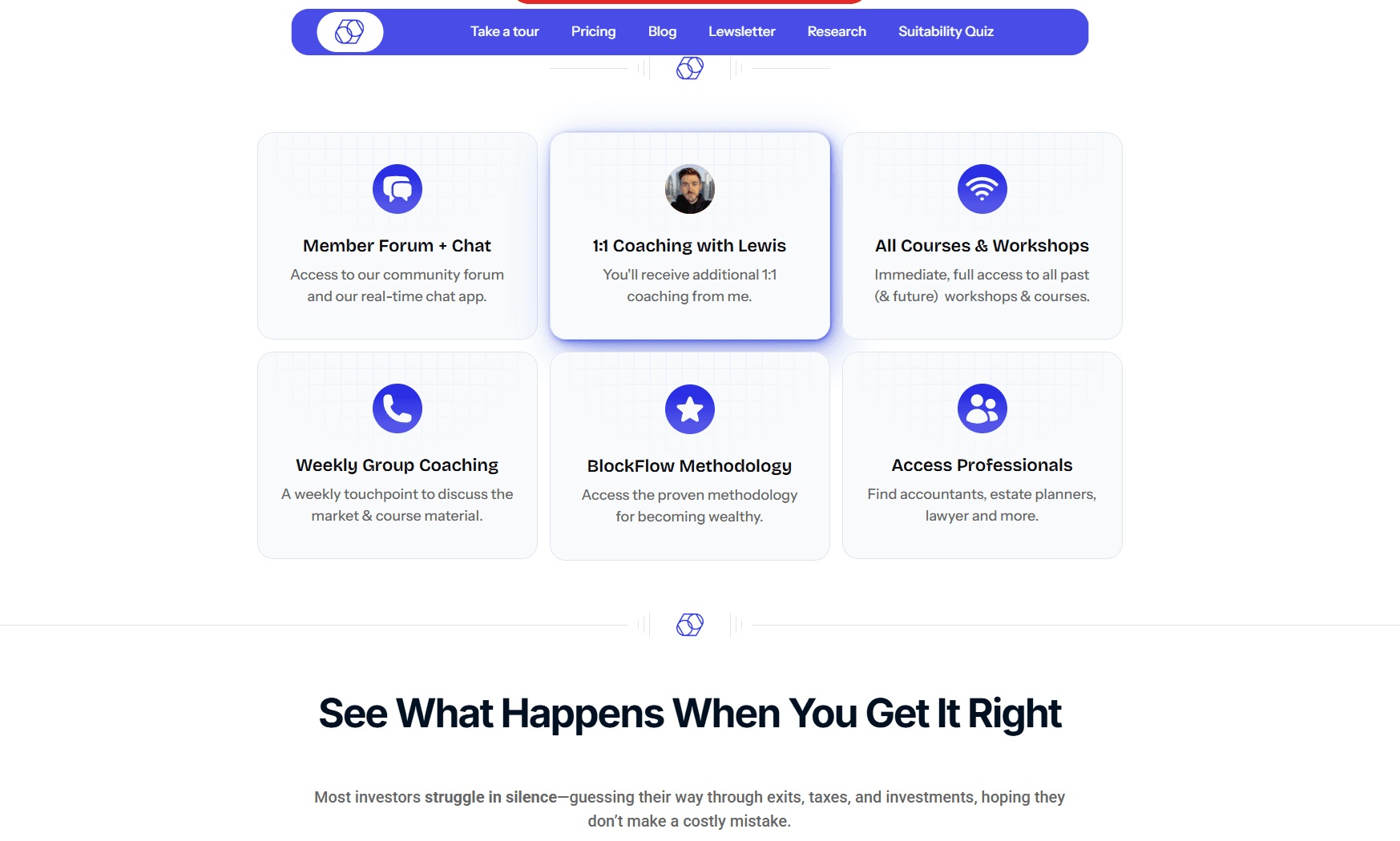 Urgency-Driven Messaging: The website needed to convey a sense of time-sensitive opportunity while maintaining credibility. Modern Visual Identity: BlockFlow’s mission required a sleek, tech-savvy look aligned with Web3/crypto aesthetics. Interactive Pathway Selection: The site had to guide users into tailored funnels depending on their investment goals or experience level. Framer Integration: A seamless Figma-to-Framer development process was required to preserve design fidelity and interactivity. Conversion Optimization: Every design decision needed to move the user toward action — choosing a path, subscribing, or investing in the roadmap.