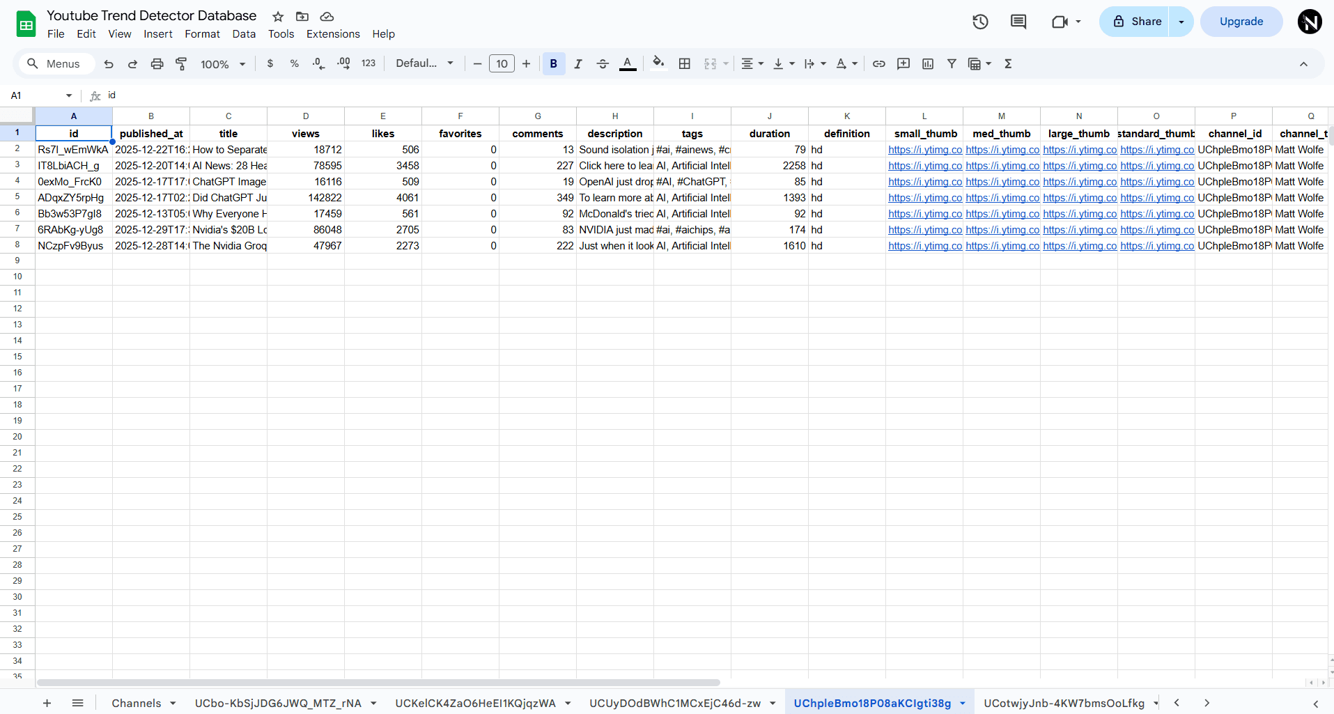 Manually tracking YouTube trends was time-consuming and inefficient: Visiting multiple creator channels daily Reviewing dozens of new videos manually Comparing engagement performance across creators Compiling insights into reports This process consumed hours and often resulted in missed opportunities. The client needed a centralized trend detection and reporting system.